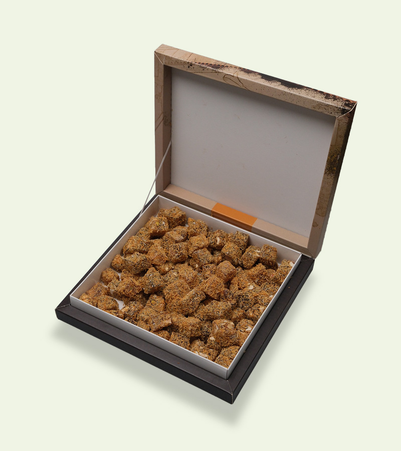 Kadayıflı Yer Fıstıklı Lokum, çıtır kadayıf dokusu ve yer fıstığıyla zenginleştirilmiştir. Farklı bir lokum deneyimi sunar.